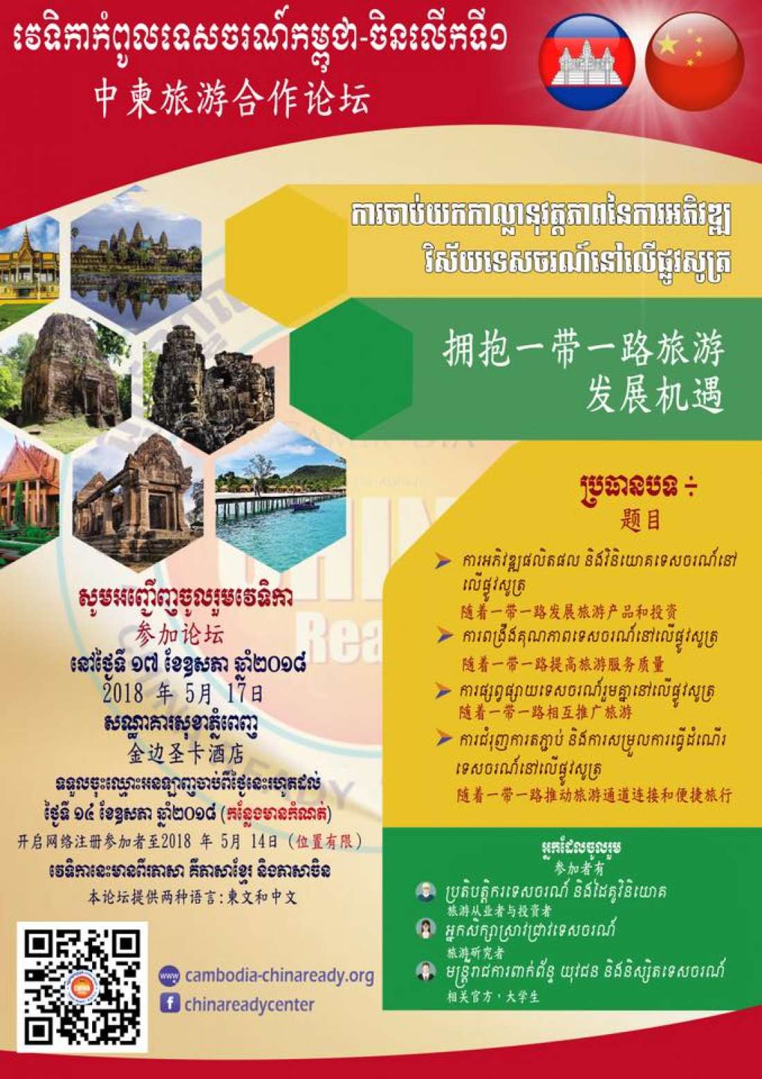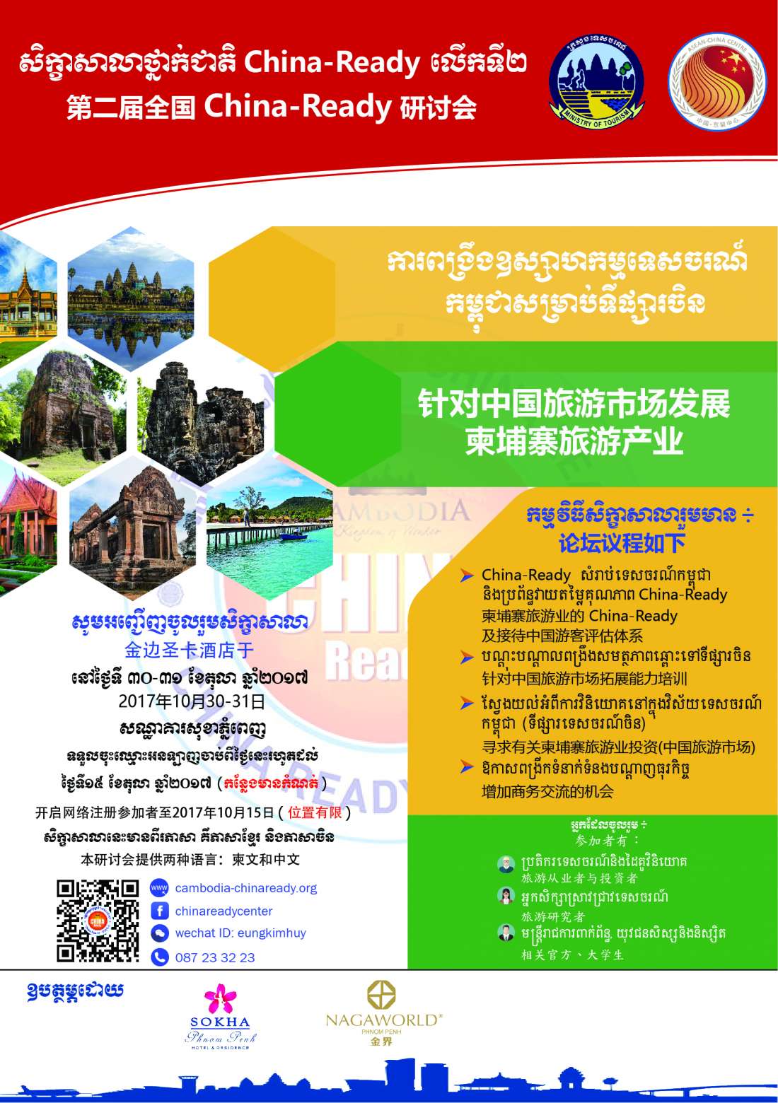 កម្មវិធីសិក្ខាសាលាថ្នាក់ជាតិលើកទី១ ស្ដីពី “ទីផ្សារទេសចរណ៍ចិន និងការត្រៀមលក្ខណៈសម្បត្តិទទួលទេសចរចិន(China Ready)សម្រាប់ទេសចរណ៍កម្ពុជា”